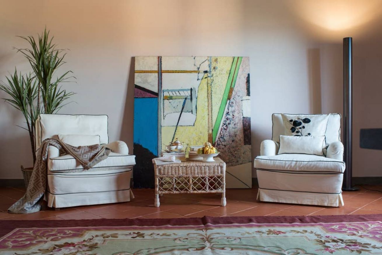 Gli ospiti possono apprezzare come arte e design possano coesistere compatibilmente all'interno di spazi e stanze comuni in una perfetta interazione che è un approccio moderno e stimolante. I mobili sono stati progettati e realizzati da Poltronova negli anni '70. I giardini rispecchiano il progetto del Porcinai (considerato uno dei più importanti architetti paesaggisti del Novecento), mentre gli esterni portano il segno distintivo di Guido Morozzi, a capo dell'Agenzia speciale per la conservazione degli edifici storici della Soprintendenza di Firenze.