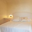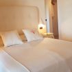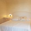 La camera da letto principale, con letto matrimoniale e bagno privato, si apre sulla terrazza con vista mare, arredata con comode poltrone. Ci sono altre due camere, una matrimoniale con bagno privato e una camera con due letti singoli e bagno. Le tre camere mantengono l'elegante stile monocromatico che caratterizza l'intero appartamento. Aria condizionata e Wifi sono disponibili.