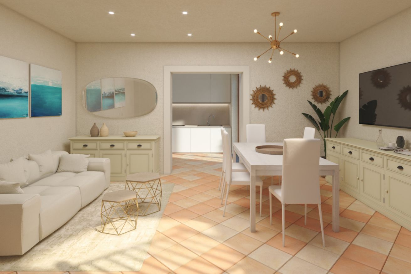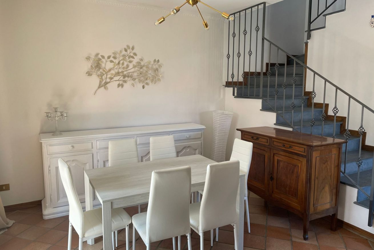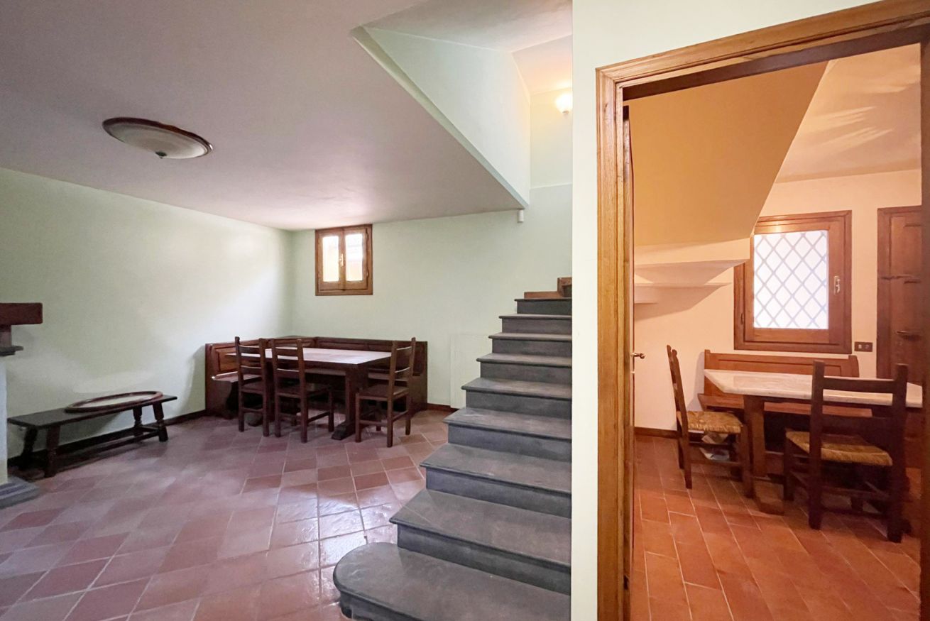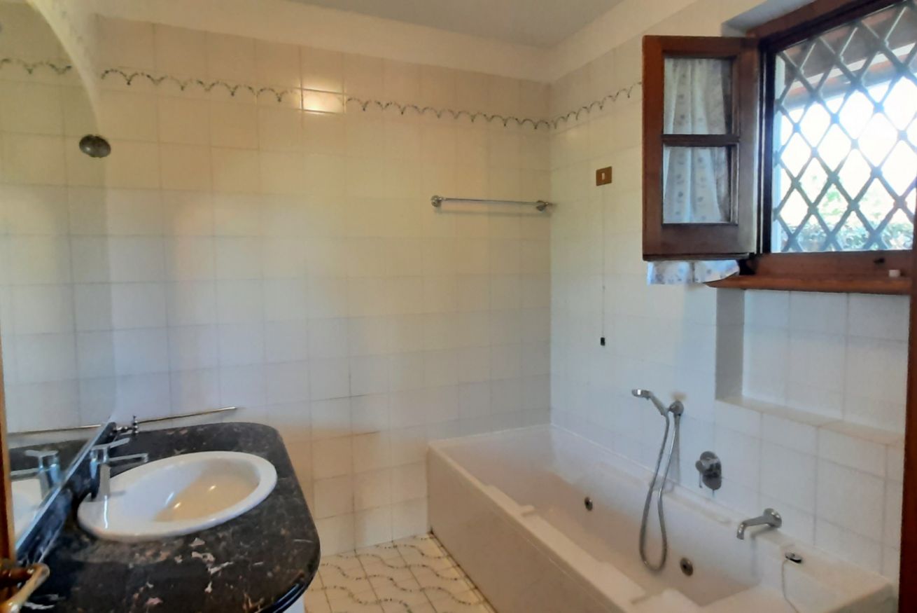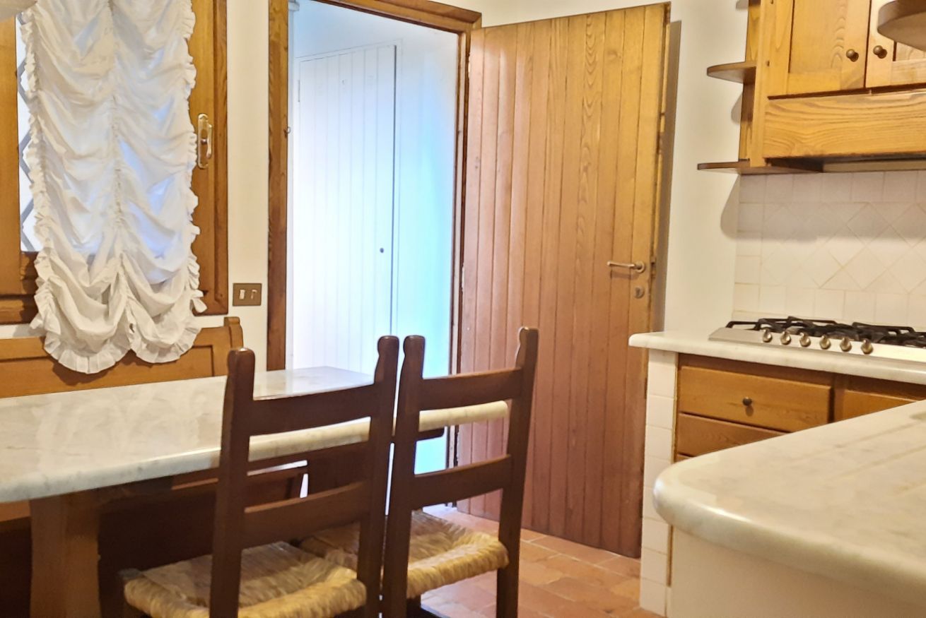Al piano del giardino troviamo le aree comuni quali cucina principale, soggiorno con pranzo interno ed esterno coperto dal loggiato ed un terzo bagno con vasca comodo per i più piccoli.