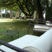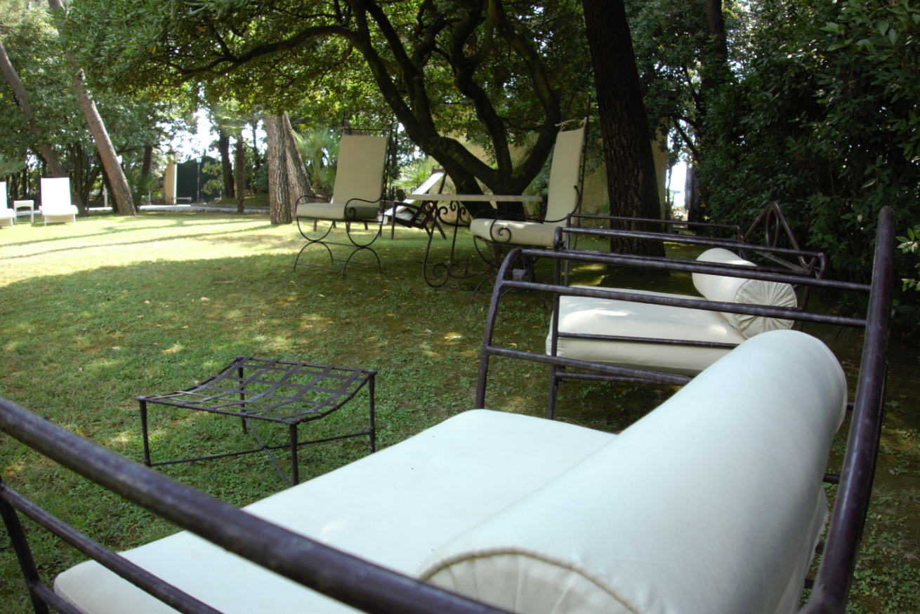 Tutti questi spazi si affacciano sul giardino, il pavimento in marmo e le spesse mura mantengono la casa fresca. Ma per