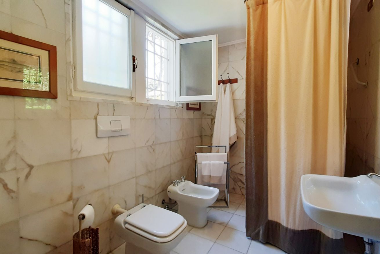 Sì, questa accogliente villa in stile italiano, è proprio di fronte al mare, solo il grande giardino all'ombra di