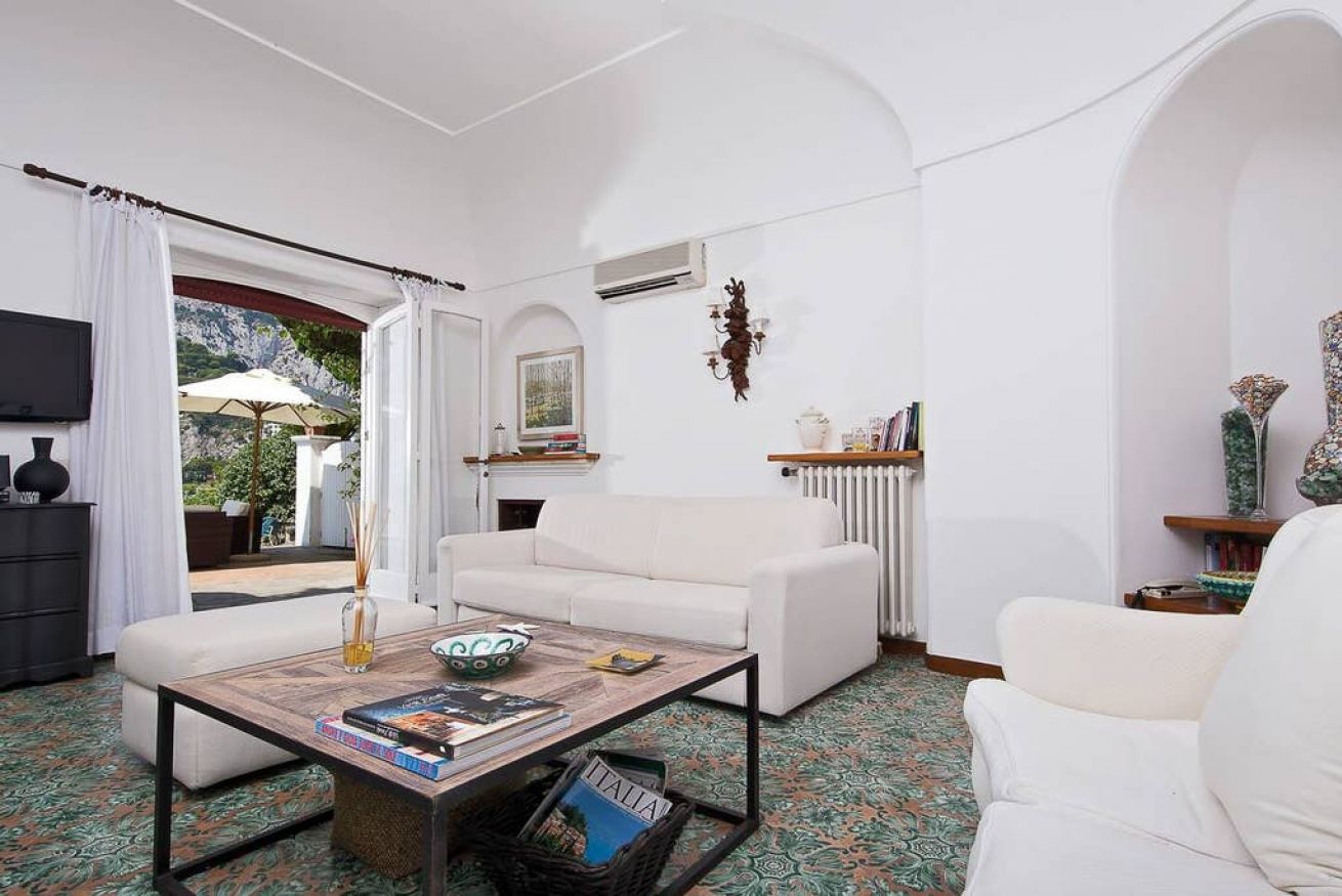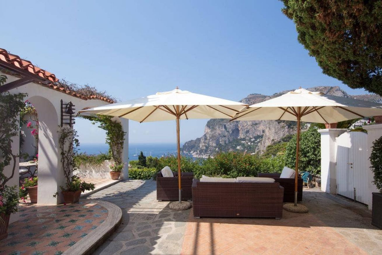 La Villa dispone di aria condizionata e connessione Wi-Fi gratuita. C'è anche una terrazza e uno splendido patio che offre un punto di vista mozzafiato sul mare e sui Faraglioni.