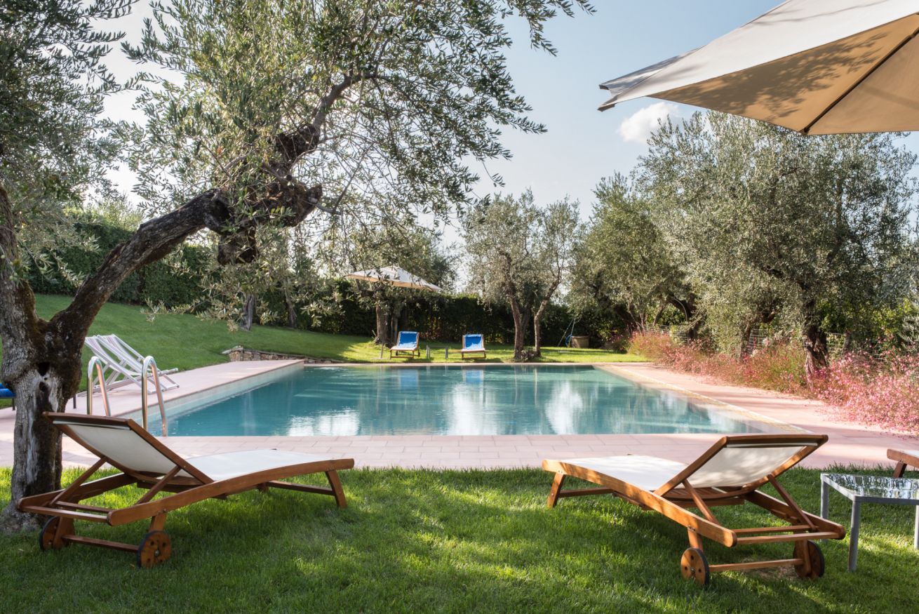 La piscina è circondata da siepi di alloro per la privacy degli ospiti. Immerso tra gli ulivi, misura 15 per 8 mt.