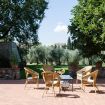 Ci sono due zone soggiorno nel parco. Una nel patio in cotto antistante la villa, con due portici dove è possibile mangiare o rilassarsi all'ombra. Un enorme fico garantisce ombra e frescura anche nei mesi più caldi. Numerose sedie a sdraio sono a disposizione degli ospiti.